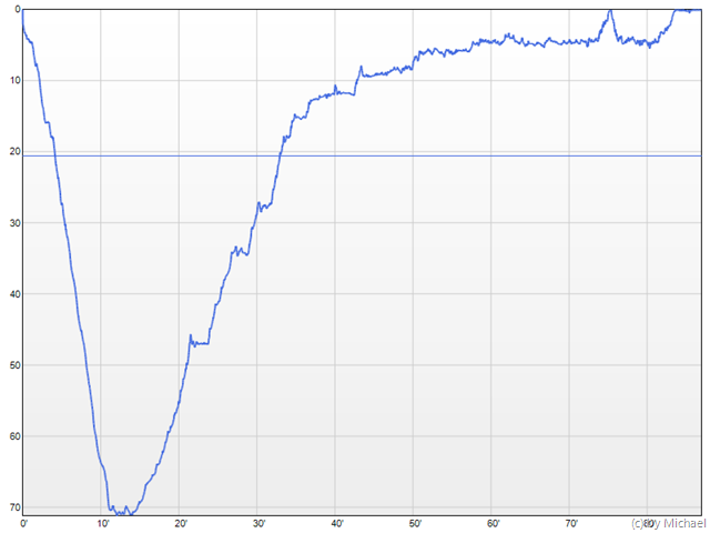 TauchprofilHeute ist ein Tauchgang mit Kurt geplant. Als ich am Attersee ankomme, bemerke ich schon beim vorbeifahren am Tauchplatz Ofen, dass der Parkplatz dort hoffnungslos überlastet ist. Daher beschließen wir, unseren Tauchgang erst um die Mittagszeit durchzuführen. In der Hoffnung, dass dann weniger Taucher dort sind.