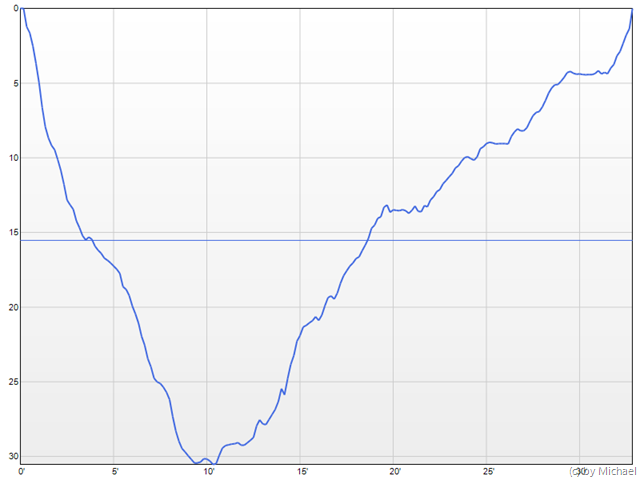 Tauchprofil Christian möchte noch einmal den gleichen Tauchgang machen, da es zum Boot auf 31m will. Diesmal fühlte es sich auch wohl dabei und wir kamen zum Boot mit dem Häuschen. Nach einem kurzen Aufenthalt ging es zurück zur Wand und auf dem gleichen Weg zurück wie beim 1. Tauchgang. Im 15m Bereich setzte ich meine Boje, um nicht aus der Übung zu kommen. Bei der Plattform auf 15m angekommen gab ich Christian meine Kamera und er knipste ein paar Fotos von mir, damit ich auch einmal auf den Fotos zu sehen bin. 🙂 Für seine ersten UW-Fotografierversuche gar nicht schlecht.