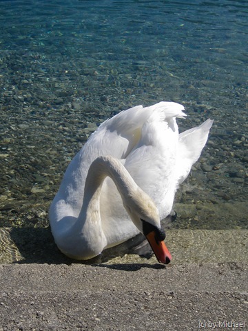 Schwan Aber das kühle Wetter und die Wassertemperatur von 6°C an der Oberfläche zieht noch keine Badegäste an. Ausgenommen unseren weißen Freund, der sich schon sichtlich Wohl fühlt!