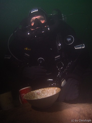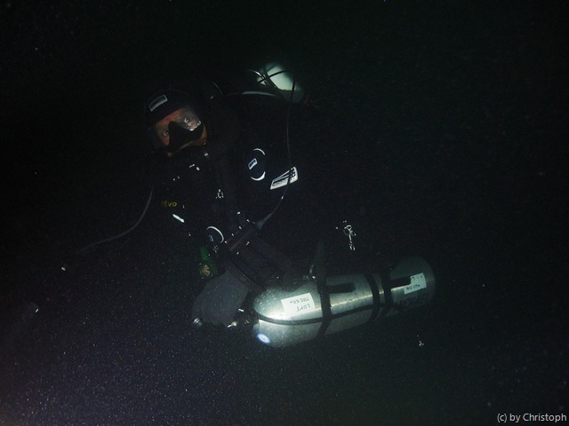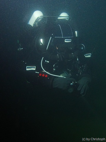 In den oberen 15m ist die Sicht nicht so besonders, deshalb gehen wir auf unsere geplanten 32m, um dort ein paar Fotos zu schießen. Naja, die Fotosession müssen wir wohl im Winter noch einmal wiederholen, bei besserer Sicht und mehr Licht.