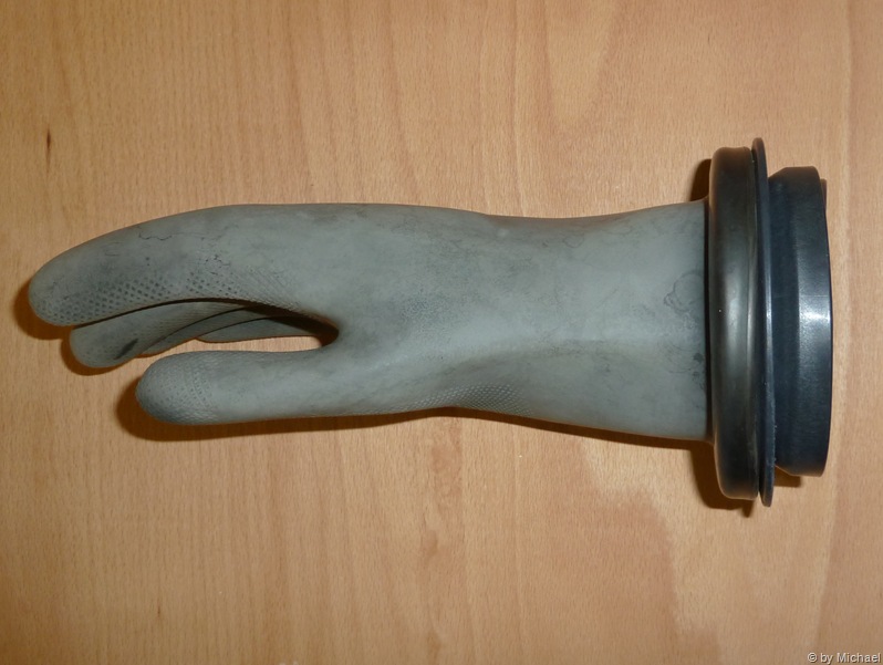 – Der Gummihandschuh wird beim Anziehen einfach über den Außenring gestülpt.