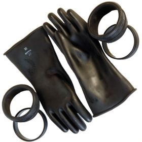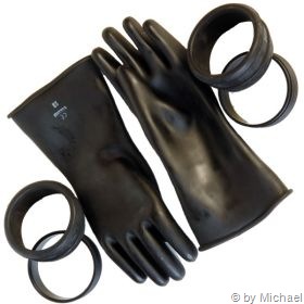 – Lange Gummihandschuhe, die zusätzlich die Manschetten vor Beschädigung schützen.