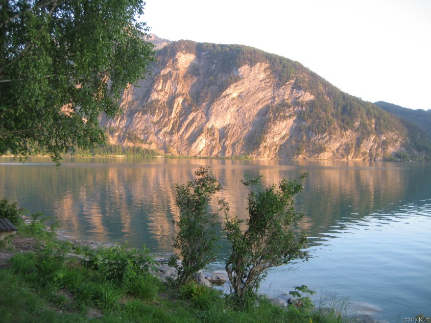 Nach dem Trimix Tauchgang am Vortag mit Volker u. Michael bin ich vor der Heimreise am Attersee nochmals abgetaucht. Die letzten Sonnenstrahlen beleuchteten die Berge.