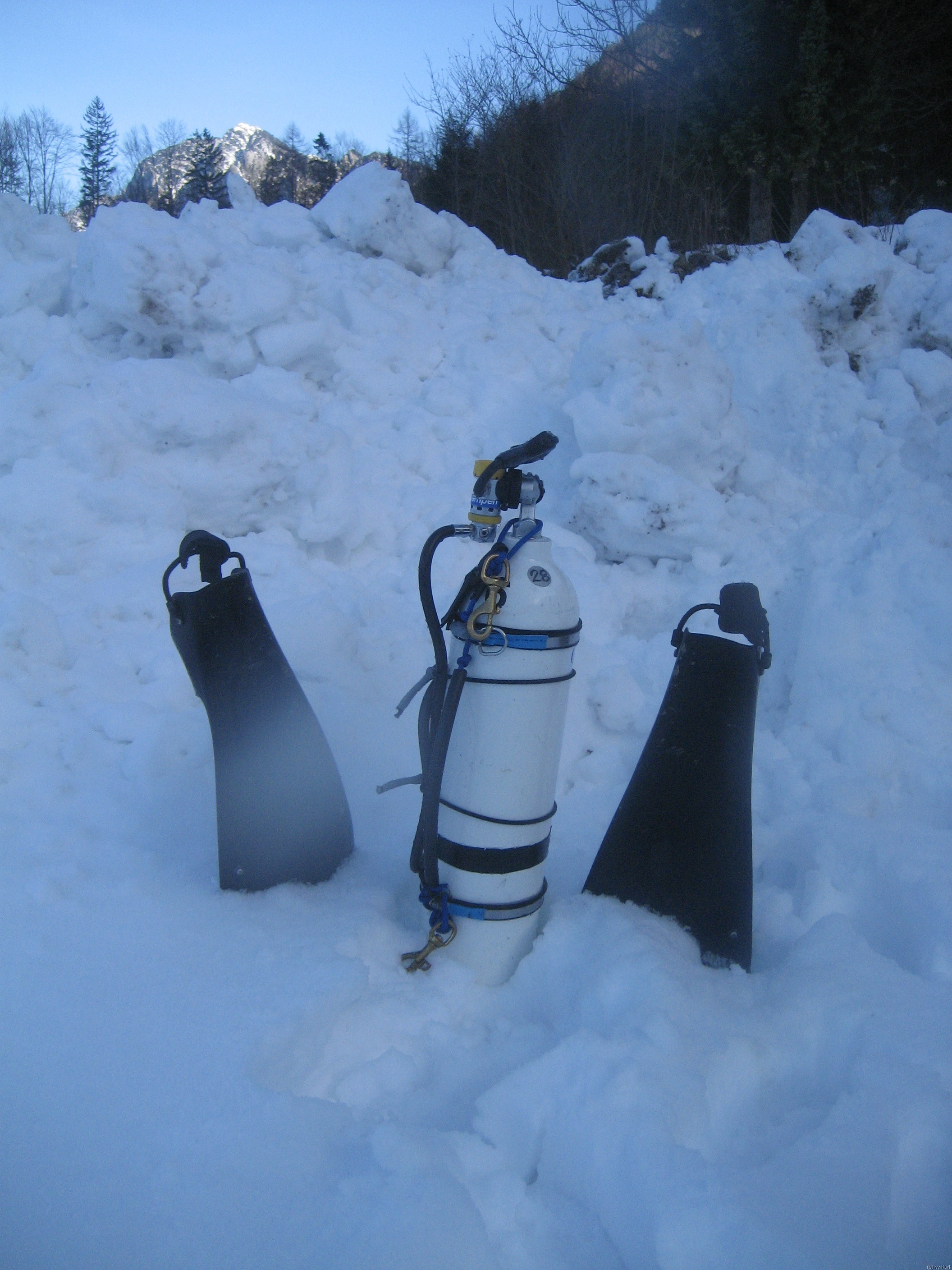 Nach 48 min beendete ich den Tauchgang. Wie schon erwähnt war der Rückweg zum T4 Bus beschwerlich. Ich musste eine ziemliche Stecke im Tiefschnee zurücklegen u. dann noch ca…. 1,5m Schneemassen überwinden.