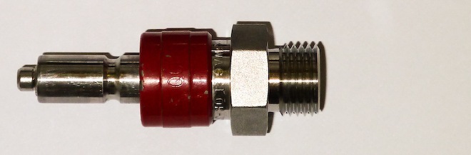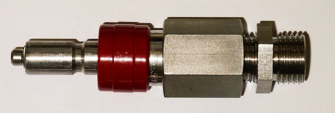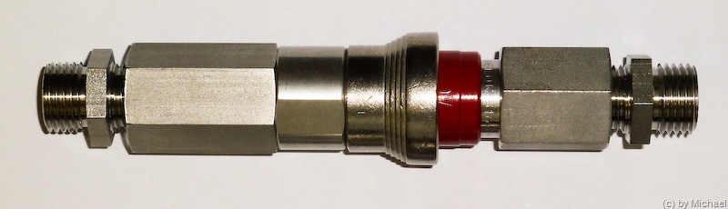 Bei den Original Swagelok Teilen benötigt man ein Adapterstück für ein 9/16 Gewindeanschluss (Automaten Mitteldruckschlauch). Diese haben inkl. Adapter ein Gesamtgewicht von 208 Gramm und eine Länge von 12,7 cm.