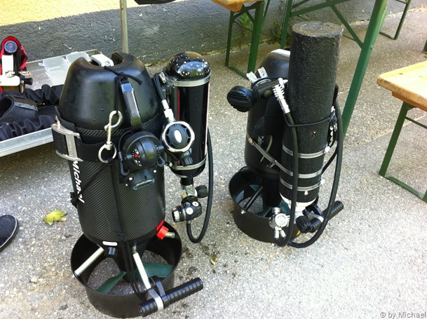 Wir planen einen Scootertauchgang mit unseren Rebreathern (rEvo & Hammerhead). Christoph nimmt seinen Multitec-Scooter und ich meinen Bonex Reference.