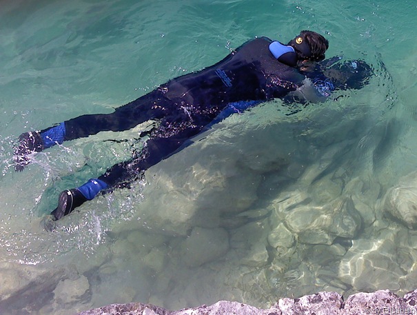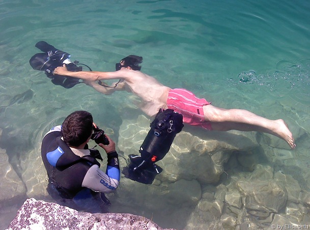 Zwischendurch wärmen wir uns bei einem Sonnenbad wieder auf, da es ab 3m Tiefe doch etwas frischer wird.