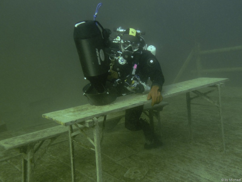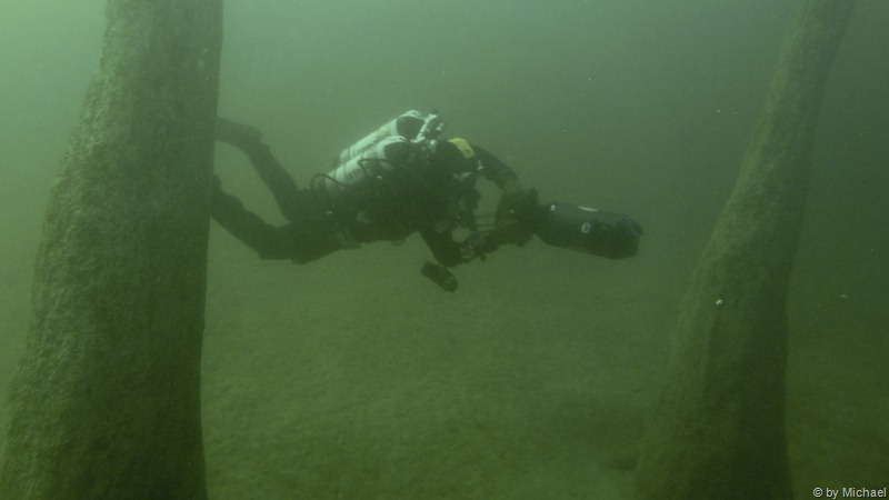 Zum Abschluss unseres verlängerten Tauchwochenendes beschließen Kurt und ich einen Tauchgang beim Unterwasserwald, um zwischen den Baumstämmen herum zu flitzen.