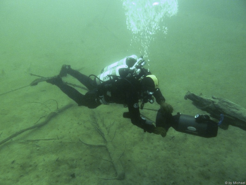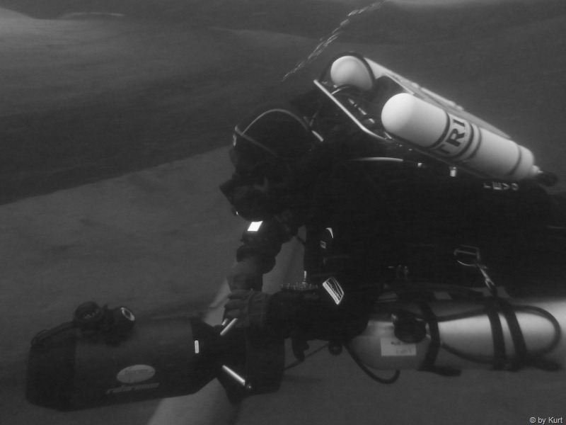 Nach dem abtauchen flitzen wir unter Wasser entlang. Vorbei an der Madonna … vorbei an der Schwarzen Brücke … vorbei an … tja wo waren wir dann eigentlich? … keine Ahnung! Wir fahren ca. 30 Minuten nordwärts bevor wir umkehren.