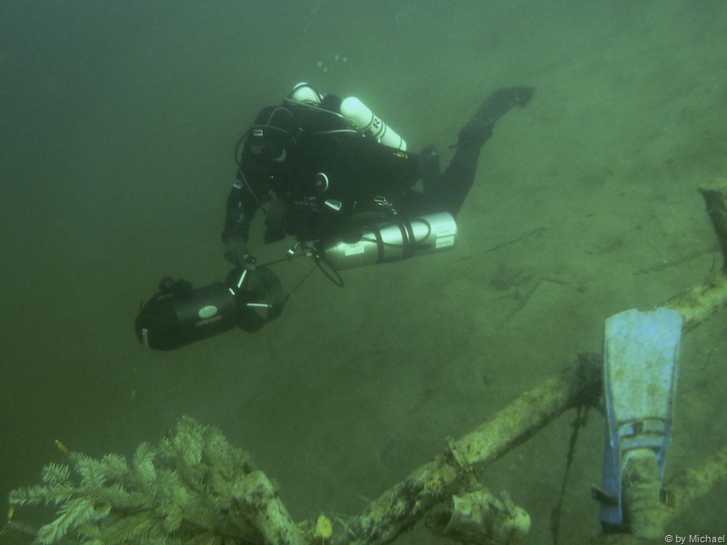 Heute führt Kurt mit Volker und mir das erste mal seinen neuen (kratzerlosen)Scooter aus! Beim Einstieg ins Wasser treibt das Gerät von Kurt gleich mal ab und bekommt seine ersten Schrammen noch bevor ihn Kurt eingeschaltet hat.