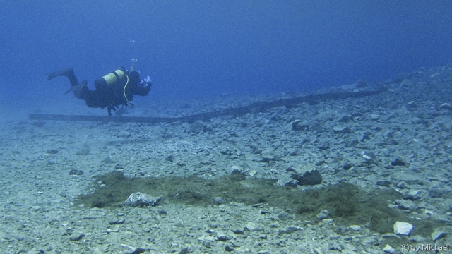 Den zweiten Tauchgang starten wir um 13:27 Uhr. Dieses mal tauchen wir links Richtung Steg, der sich noch unter Wasser befinden müsste.