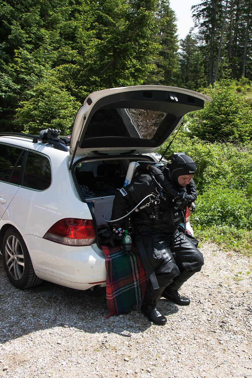 Dabei wäre dieser Tauchtag beinahe ins Wasser gefallen. Der Grüne See öffnet seine Pforten normalerweise am 1. Mai. Auf Grund des sehr niedrigen Wasserstandes war zu dieser Zeit jedoch noch nicht an Tauchen zu denken. Glücklicherweise wurde am 10. Mai mit einem Wasserstand von 4,60m die Taucherlaubnis erteilt, und unserem Tauchvergnügen stand nichts mehr im Weg.
