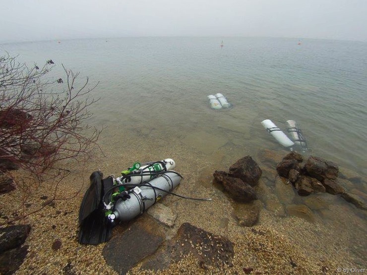Heute treffe ich mich mit Andreas und Hannes um 09:30 Uhr beim Tauchplatz Ofen. Wir absolvieren einen Trainingstauchgang für unsere Kroatientour im September. Da ich schon etwas früher am Tauchplatz bin, bereite ich meine Ausrüstung schon etwas vor.