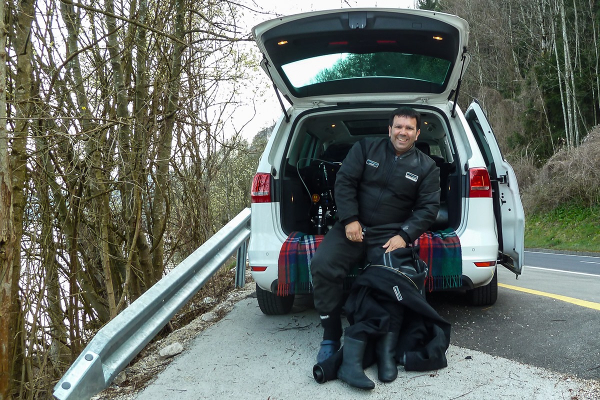 Wir einigen uns auf den Tauchplatz Wandl/Burgau. Wir treffen gegen Mittag ein und ergattern mit müh und not die letzten beiden Parkplätze.