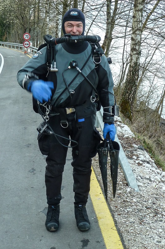 Heute entschließen sich Christoph und ich bei der Schlierwand zu tauchen. Andreas fällt nach einer anscheinend etwas längeren Nacht und Bockbier leider aus – wir vermuten negativen weiblichen Einfluss! 😉