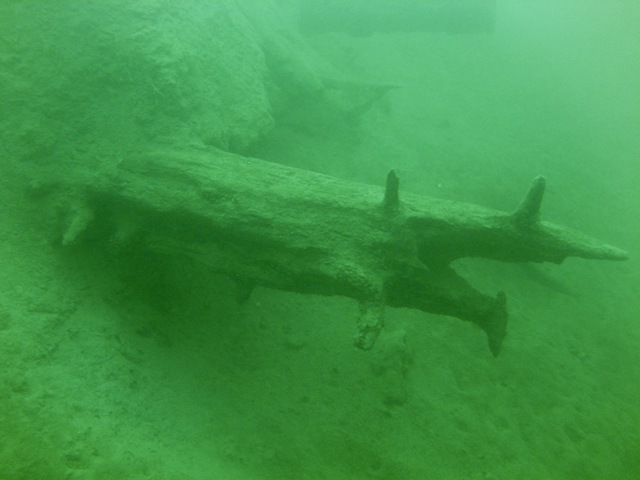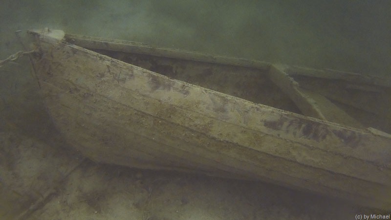 Nach etwa 30 Minuten Grundzeit kehren wir um und beginnen langsam mit dem Aufstieg. Beim Ausstieg angekommen, bleiben wir noch etwas im Flachwasser, um die dort liegenden Schätze zu begutachten. Ein kleines Boot und ein gusseiserner Ofen, der dem Tauchplatz auch seinen Namen verdankt.