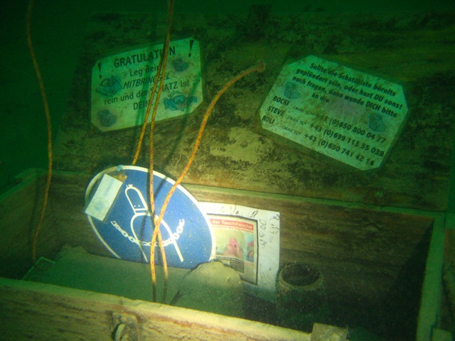 Nach kurzer Tauchzeit erblicken wir die Schatzkiste, die der ein oder andere schon entdeckt hat. Der Inhalt hat sich nicht merklich verändert.