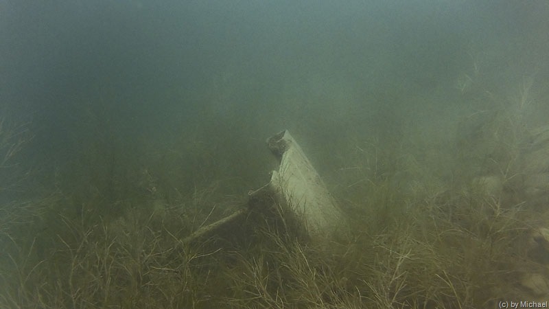 Beim Unterwasserwald werde ich fündig. Zweit nette deutsche Sporttaucher erbarmen sich meiner. Sie schauen zwar etwas neugierig auf meine Ausrüstung, löchern aber nicht weiter mit Fragen. Ein Taucher mit Kreislaufgerät und 2 Stages ist wohl doch nicht das übliche Bild am Unterwasserwald.