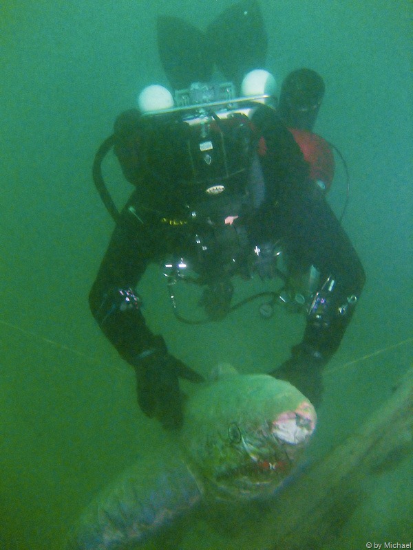 Kurt hat bei diesem Tauchgang die Kamera in der Hand, und somit bin ich endlich auch wieder einmal zu sehen. Er hat leider mit der fehlenden Sonne zu kämpfen – viele Fotos sind unscharf auf Grund der schlechten Lichtverhältnisse.