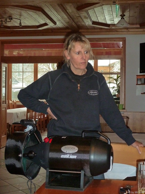 Danach geht es in unsere Basis, wo ich Werner helfe seine Heizungsdurchführen an seinen Wintertrocki zu wechseln. Danach fahre ich ihn nach Hause und wir machen es uns bei einer Flasche französischen Birnenschaumwein im Garten gemütlich.