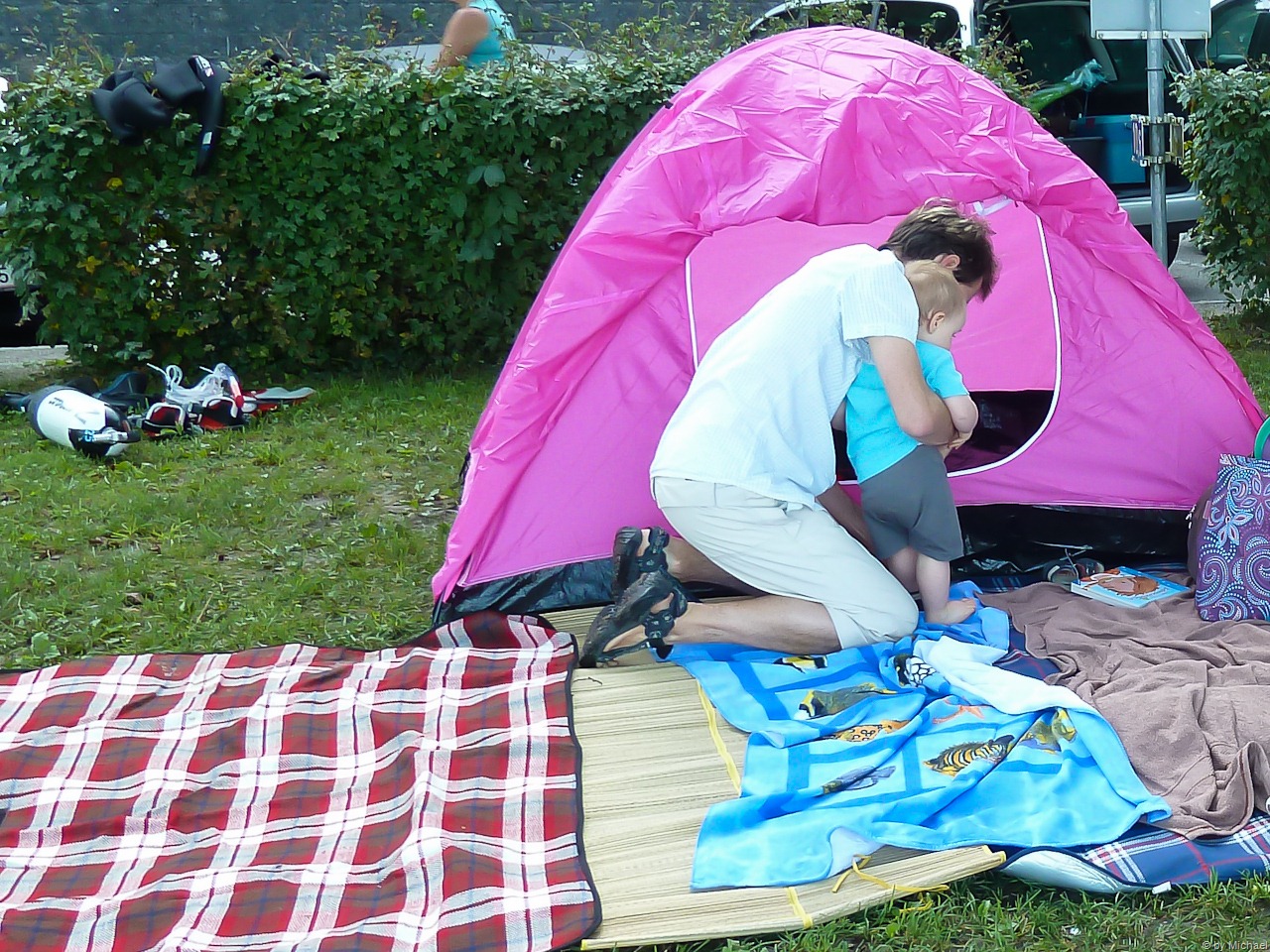 Wir schlagen unser Lager auf. Am meisten fällt natürlich das Zelt von Markus auf!
