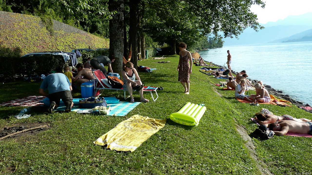 Wir treffen uns um 9:00 beim Badeplatz Dixi. Fast schon zu spät, es sind kaum noch Parkplätze frei. Es habe wohl mehrere die Idee baden zu gehen.