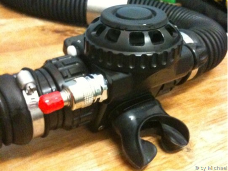 Beim Regler für das Diluent ist ein normaler Service ausreichend. Auch diese Stufe wird mit einem Überdruckventil und einem Anschluss-Adapter versehen.