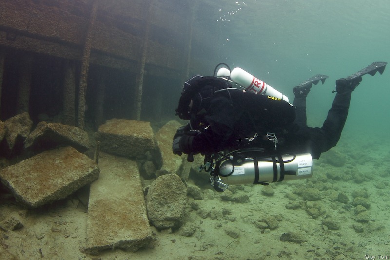 Zum Endes des Tauchgangs noch ein kleiner Besuch beim Bootshaus, um die Fundamente zu prüfen!