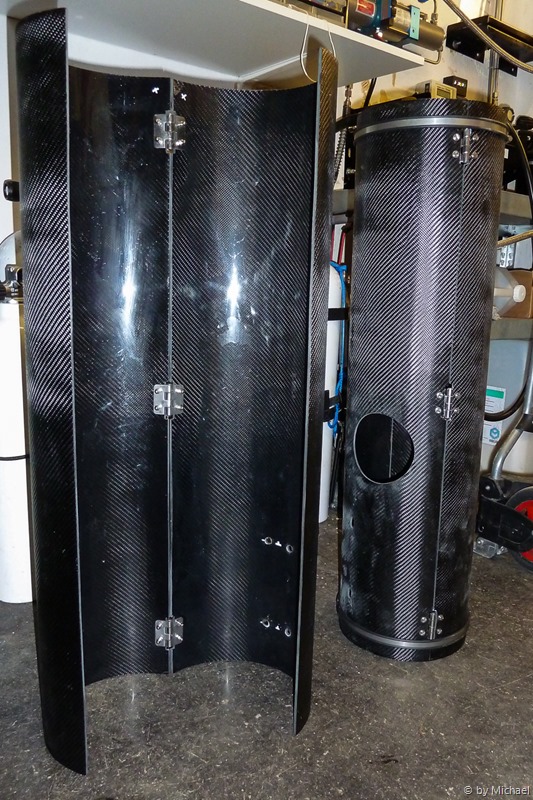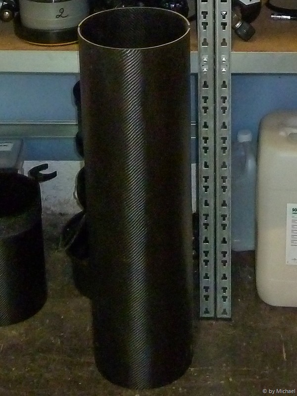 Wir beginnen diese Wochenende mit dem Gehäuse, das aus zwei ca. 80cm langen Carbon-Halbschalen besteht. Der erste Schritt besteht darin, die Löcher für die Montage der Teile in die Röhre zu bohren. Dabei ist überlegt vorzugehen, da die Löcher nachher nicht mehr verändert werden können.