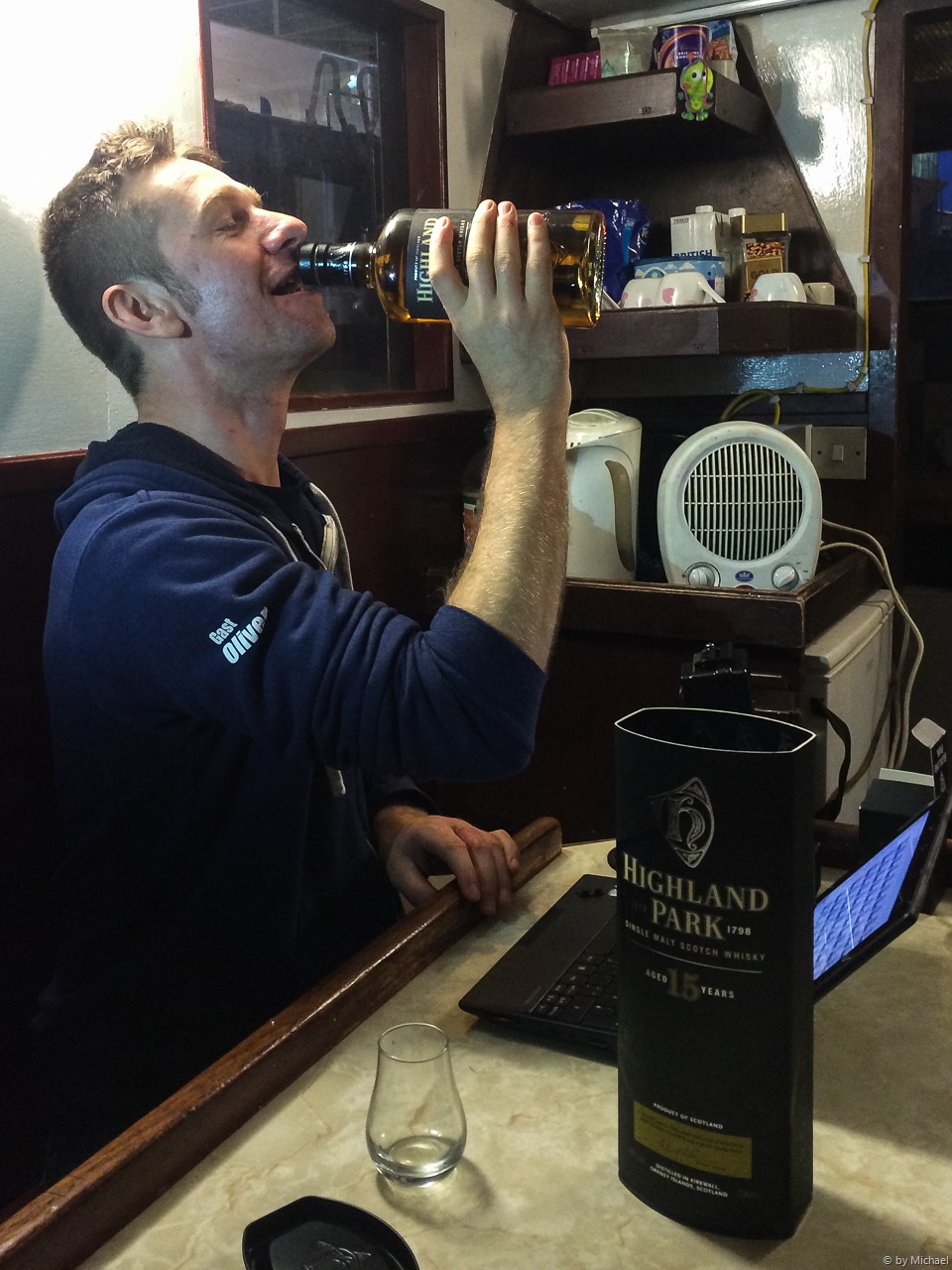 Trotzdem nimmt es Uwe mit Humor und will hier bleiben und die Woche soweit wie möglich genießen. Es sind ja auch ein paar Highlights geplant, die nichts mit Tauchen zu tun haben.