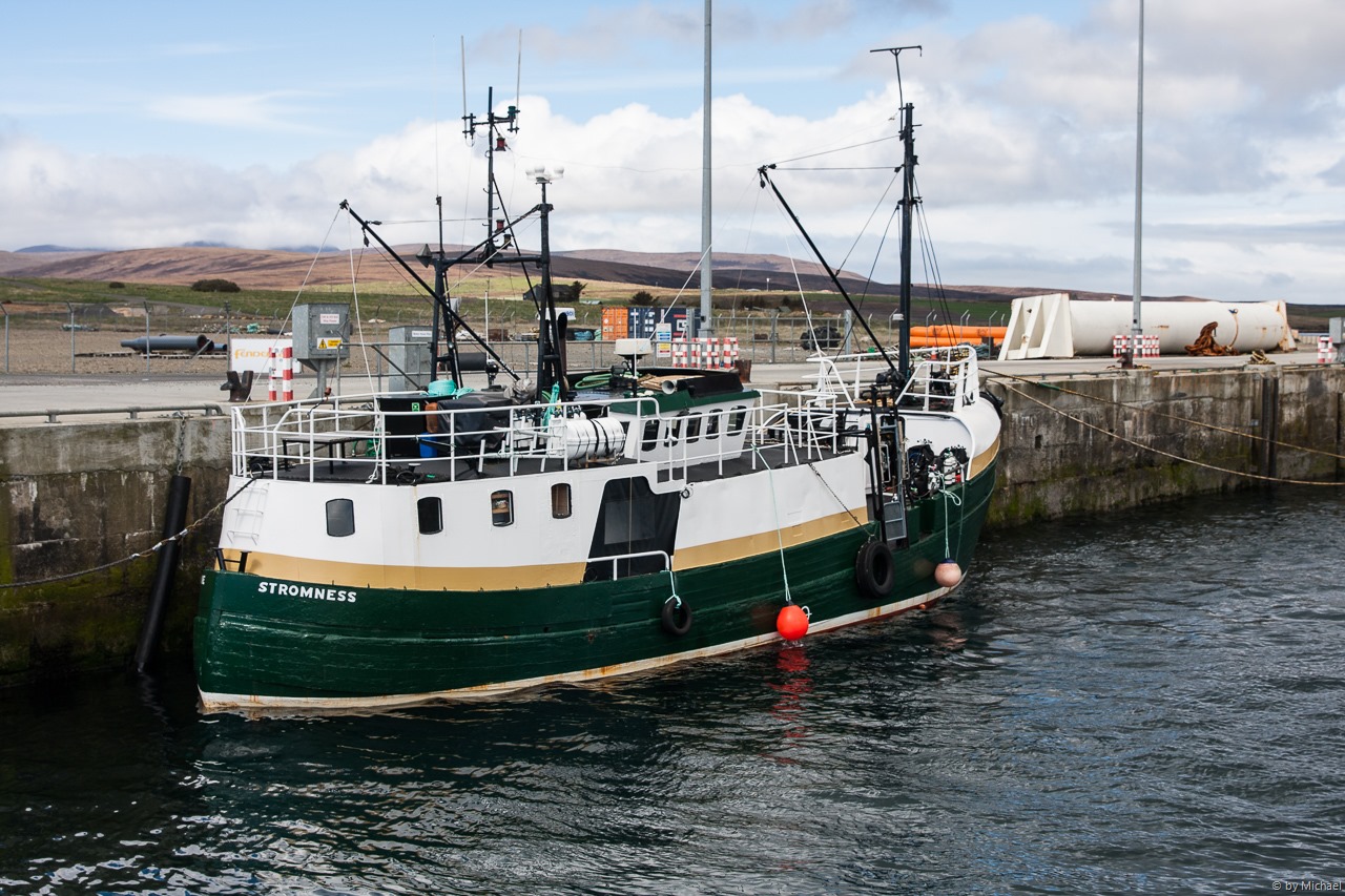 Am späten Nachmittag gegen 18:00 Uhr fahren wir noch nach Kirkwall, die größte Stadt der Insel mit etwas über 6.000 Einwohner.