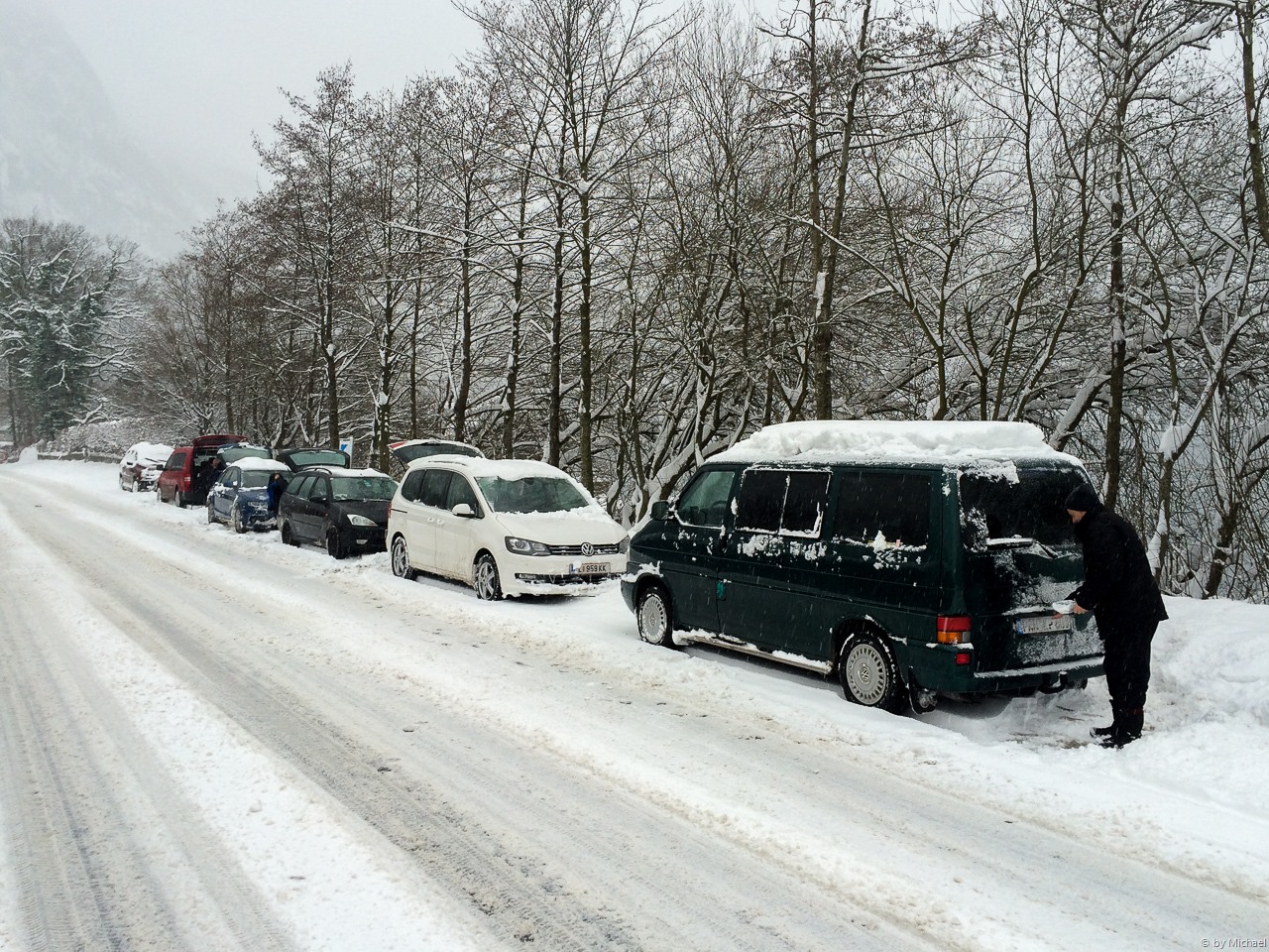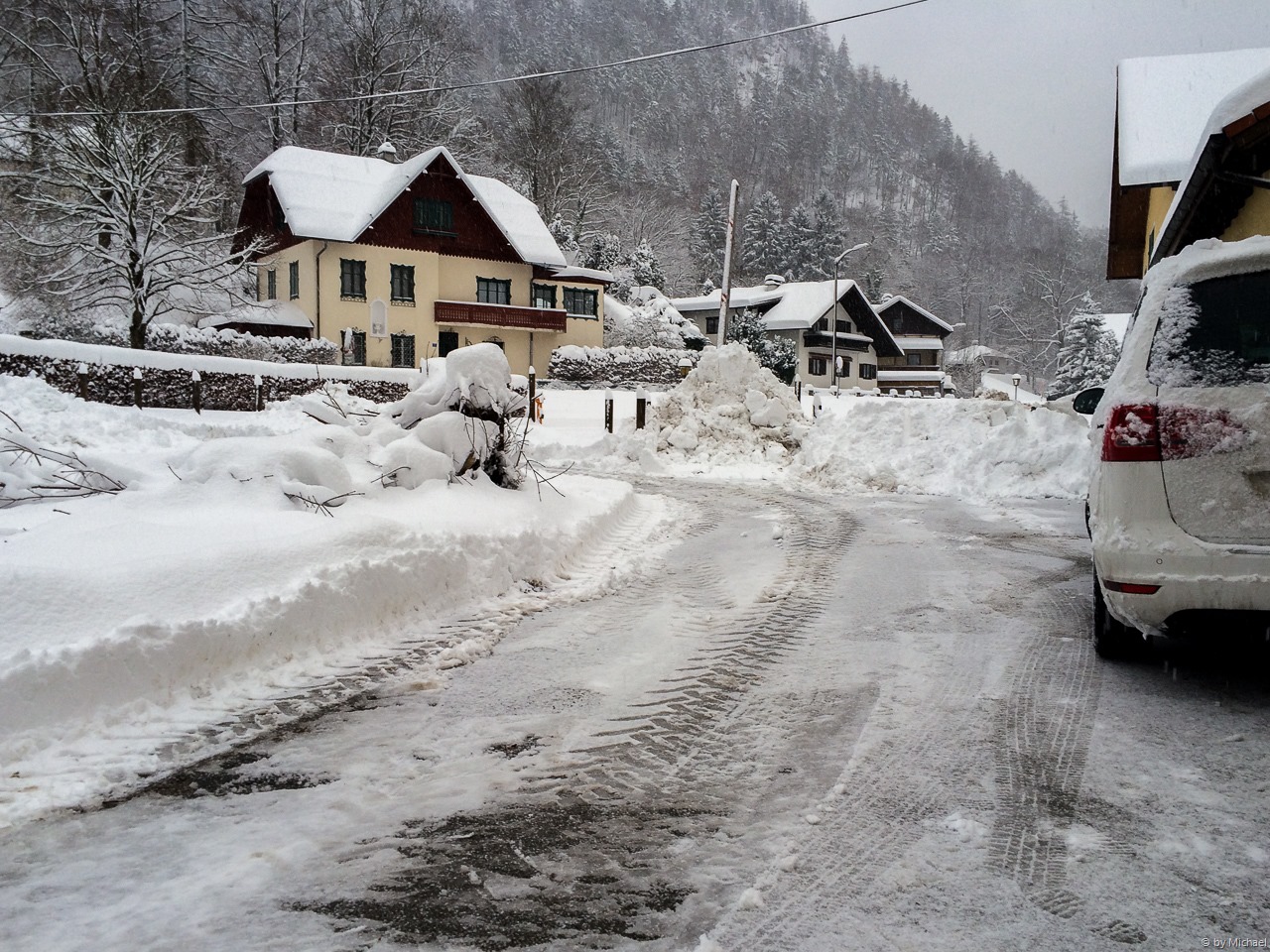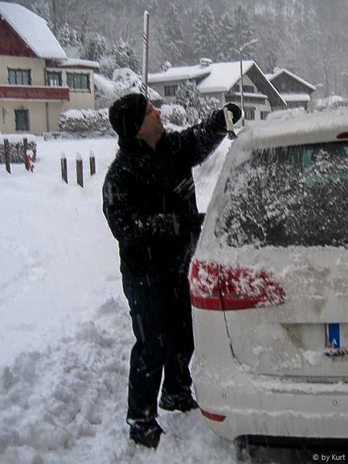Vor unserer Haustür liegt etwa 30cm Neuschnee, der zu den Schneemengen von gestern noch hinzu gekommen ist. Unsere Fahrzeuge sind mit einer großen Schneehaube bedeckt und in der Ferne kann man schon die eine oder andere Schneeschaufel hören.