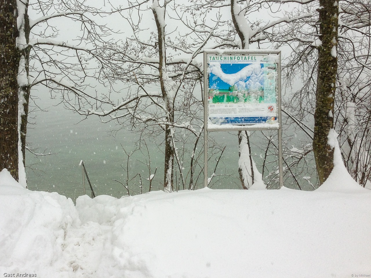 Kaum haben wir gefrühstückt und unsere Tauchausrüstung vorbereitet, höre ich wie der Schneeräumdienst gegen 10:00 Uhr in Weißenbach seine Arbeit verrichtet – und schon ist unsere Nebenstraße super geräumt – besser als die Seeuferstraße! 🙂