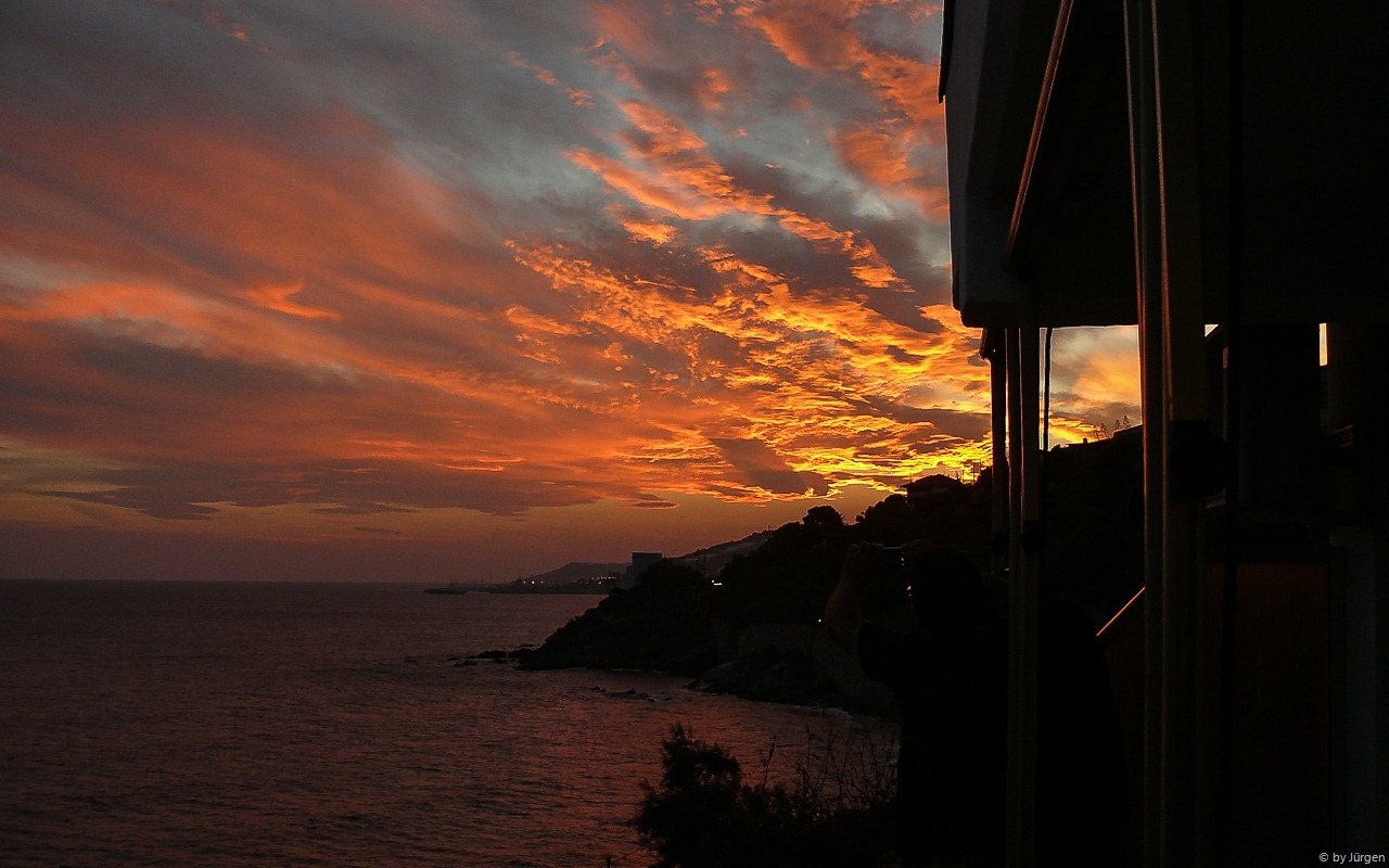 Nachdem wir wieder zurück in der Tauchbasis sind und unsere Tauchausrüstung verstaut haben, besorgen wir uns bei der Heimfahrt eine umfangreiche Jause, um diese in unserem Appartement bei Meerblick und Sonnenuntergang zu genießen!