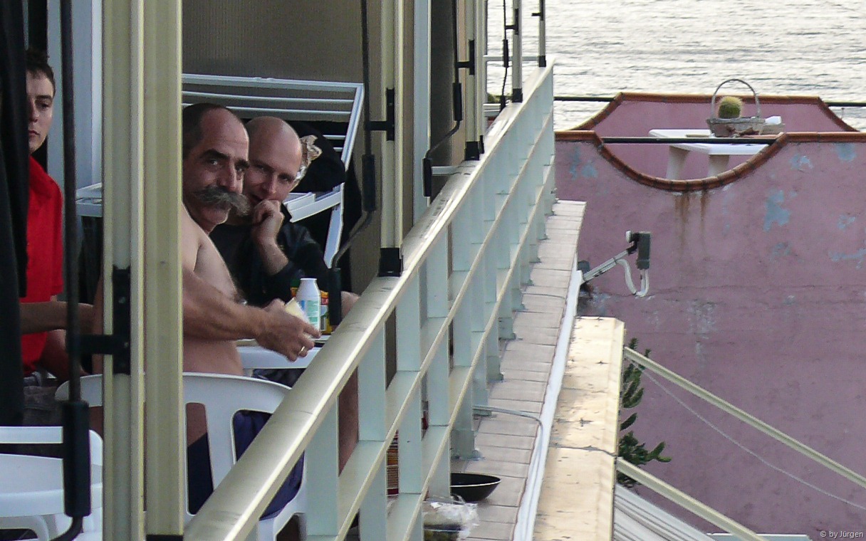 Nachdem wir unsere Tauchausrüstung an Deck gesichert haben, stürzten sich auch Uwe, Volker und ich auf die bereitstehende Pasta. Natürlich achten wir darauf, dass für Frank und Holger auch noch etwas übrig bleibt die nach uns aus dem Wasser kommen.