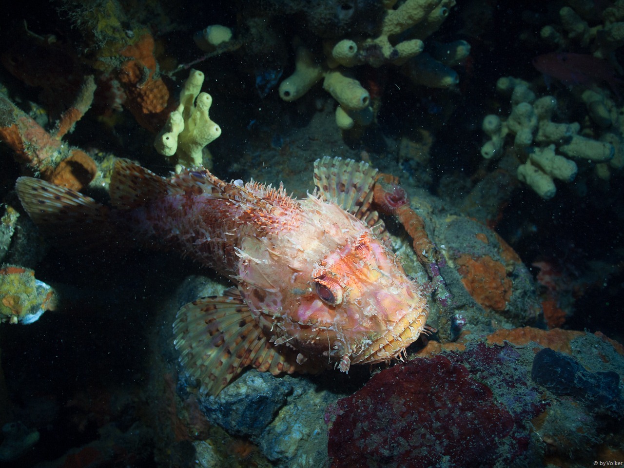 Danach hinein in die Ladeluke, um das Schiff auch von innen zu besichtigen. Auch im Inneren lässt sich Leben finden! Wieder raus durch eine andere Luke. Das Wrack bietet viele Möglichkeiten und reichlich Platz. Ich freue mich jetzt schon wieder auf den morgigen Tauchgang.