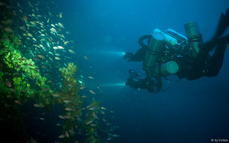 Die Reise wird von mir aus Sicht der CCR-Gruppe beschrieben, da ich in dieser tauche. Ich versuche trotzdem einen Gesamteindruck der ganzen Gruppe wiederzugeben. Da das UW-Material zum Großteil von Volker und mir stammt (CCR-Gruppe) kann es passieren, das die CCR etwas häufiger abgebildet sind als die PSCR oder OC – das ist nicht absichtlich so.