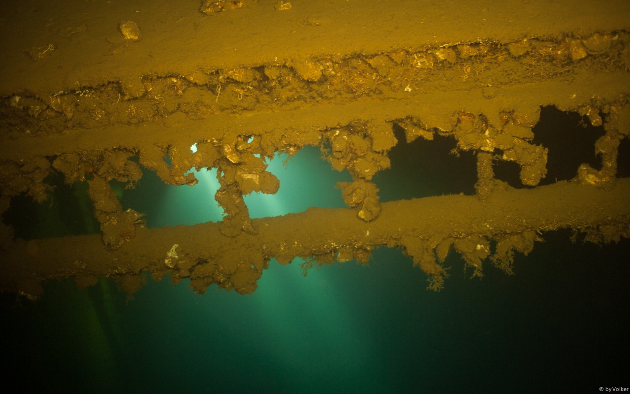 Wie man an diesem Foto erkennen kann, ist das Wrack aber etwas kompakt für 10 Taucher gleichzeitig. Aber durch die versetzten Einstiegszeiten und die unterschiedlichen Runtimes hält sich der Rummel etwas in Grenzen.