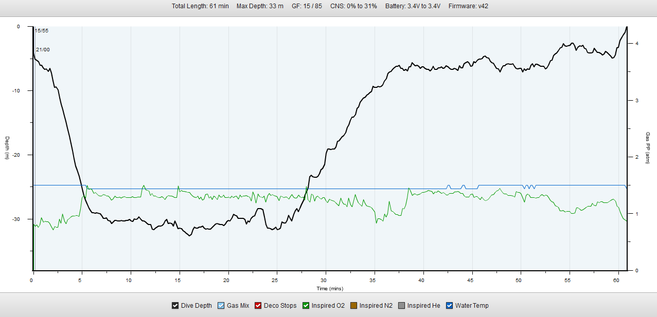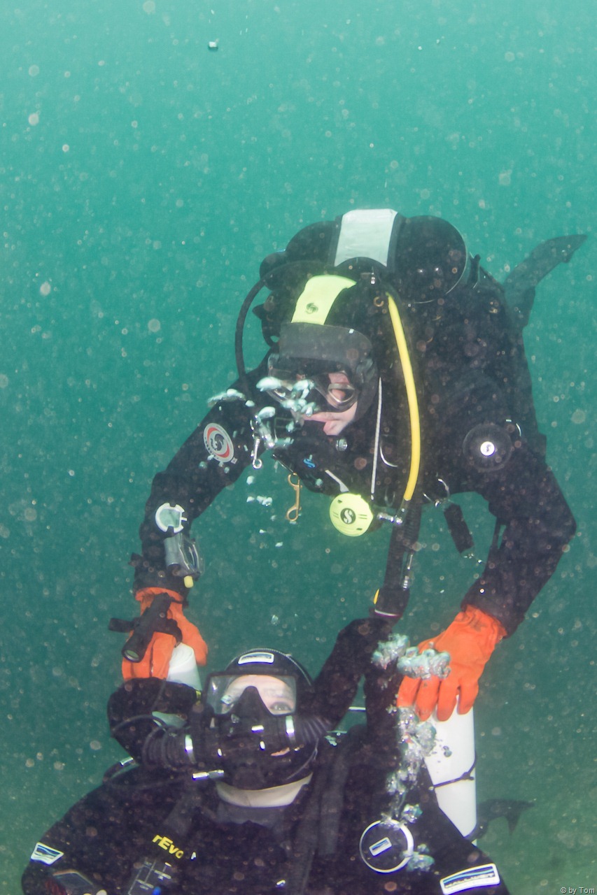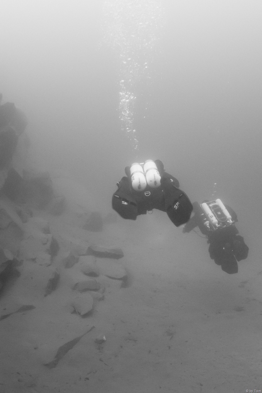 Wir tauchen ohne Scooter, da nicht alle einen zur Verfügung haben – dies macht das Antauchen etwas langwieriger, auch deshalb weil wir 2 OC-Taucher dabei haben.