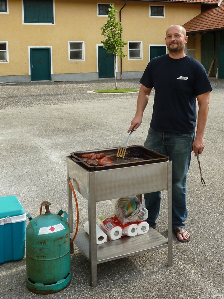 Fast zeitgleich trifft auch Christian – unser Grillmeister – ein und bringt den Griller, der unsere 40 Gäste versorgen wird.